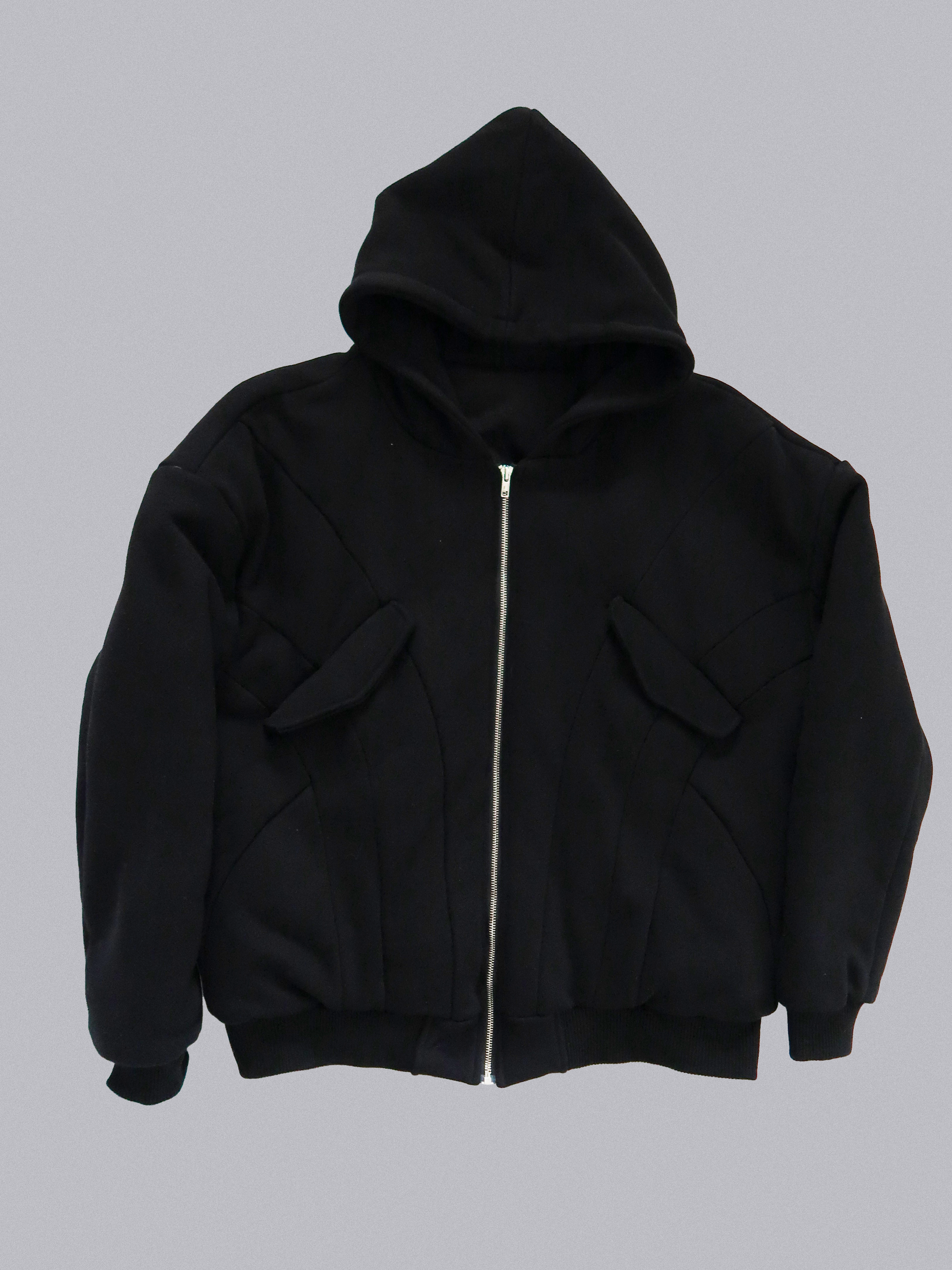 Mind Bowling's Bomber Hoodie takes inspiration from a vintage bomber jacket accented over a 500 GSM padded cotton hoodie.