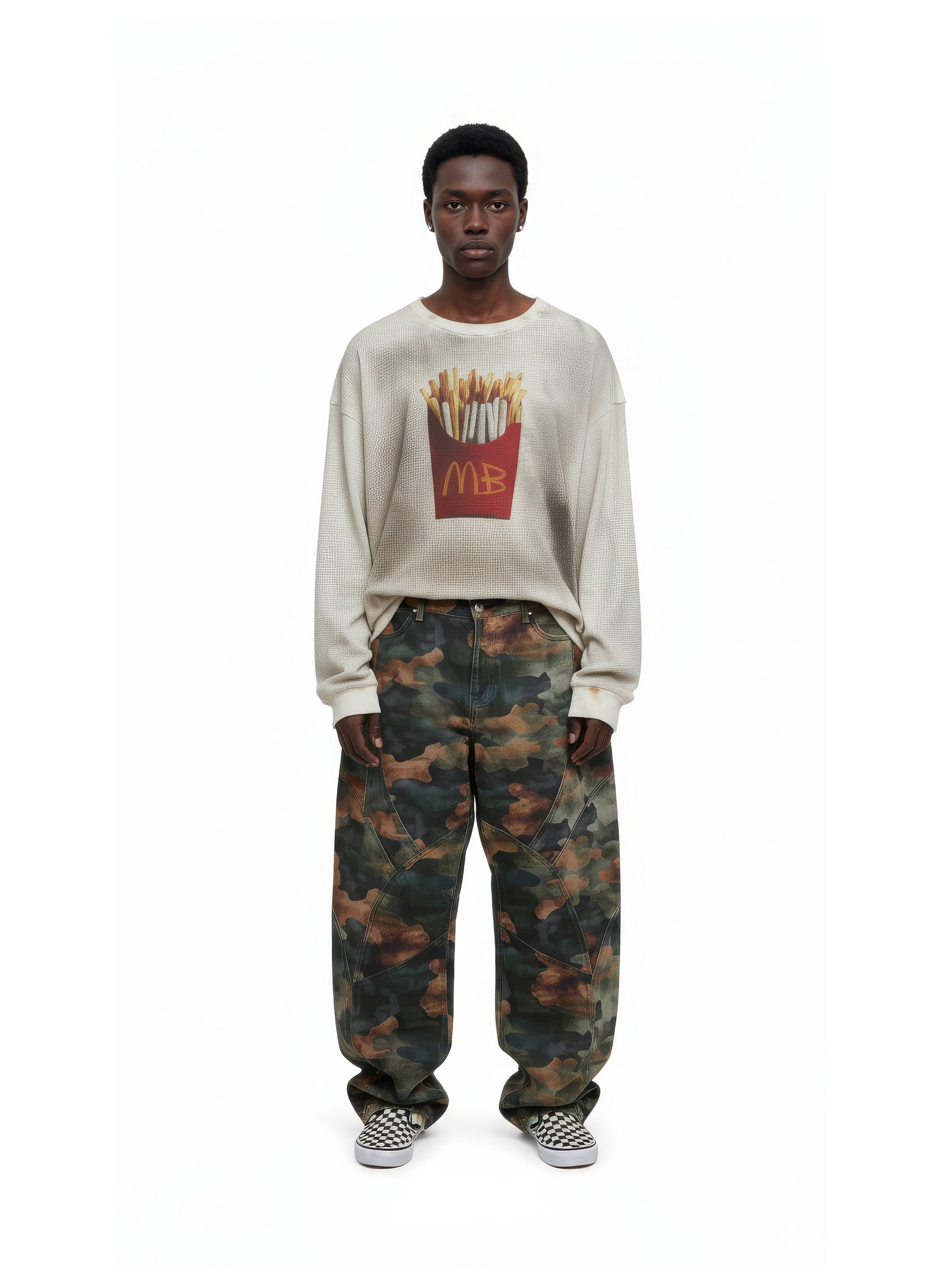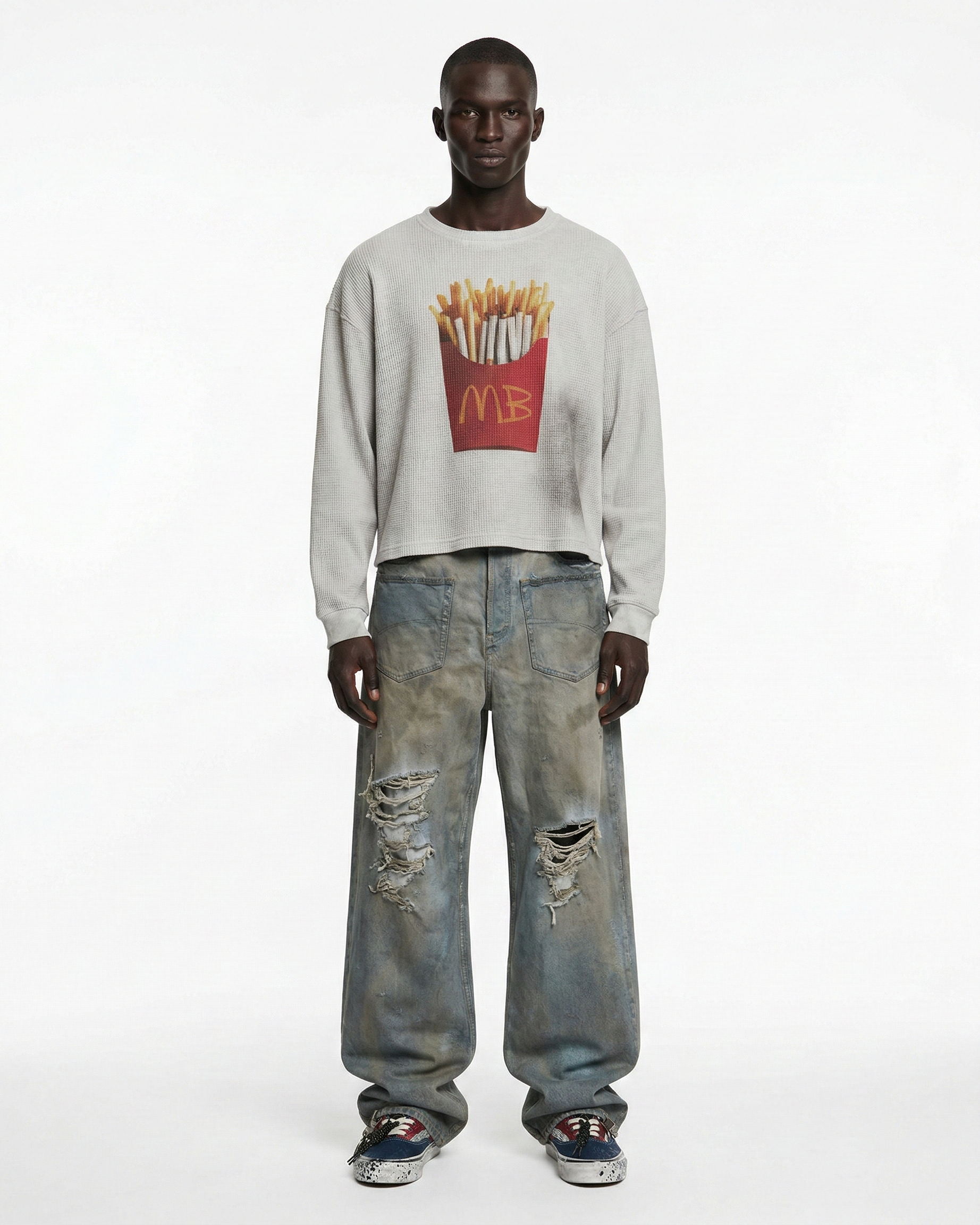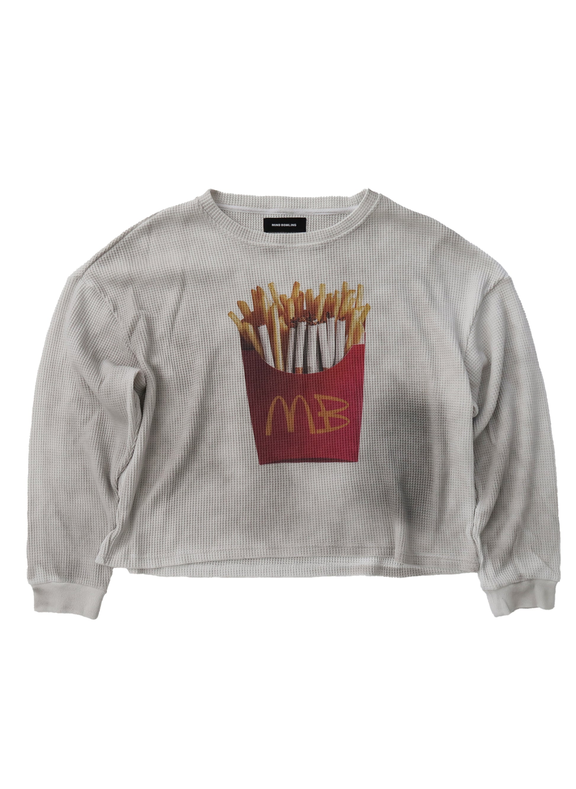 Long-sleeve crewneck thermal shirt crafted from 100% cotton with a slightly faded surface for a vintage-inspired look. Features chest logo artwork and a ribbed neckline. Cut to a relaxed fit and hip length.