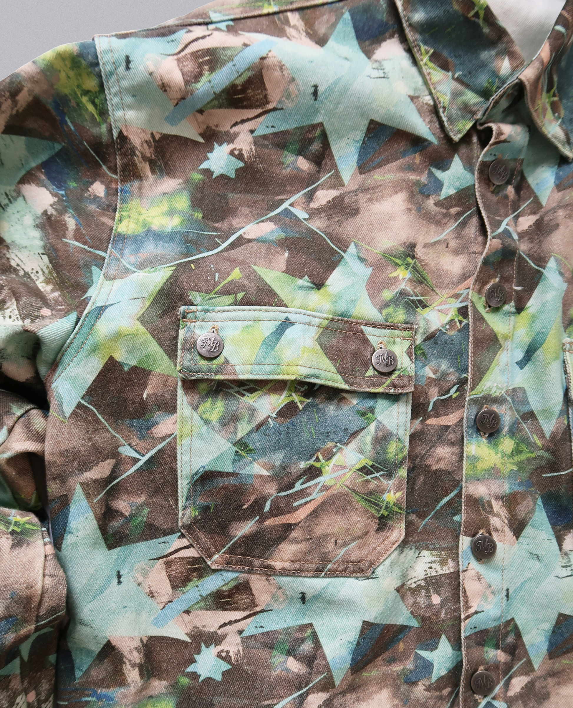 Mind Bowling's Faded Stars Denim Jacket feature a boxy fit printed with our signature artwork.